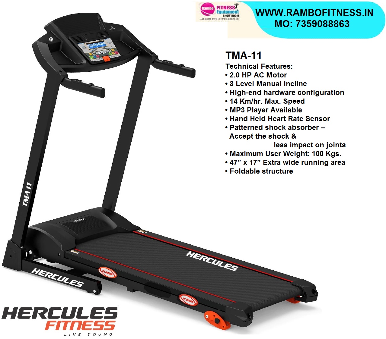 • Maximum User Weight: 100 Kgs.